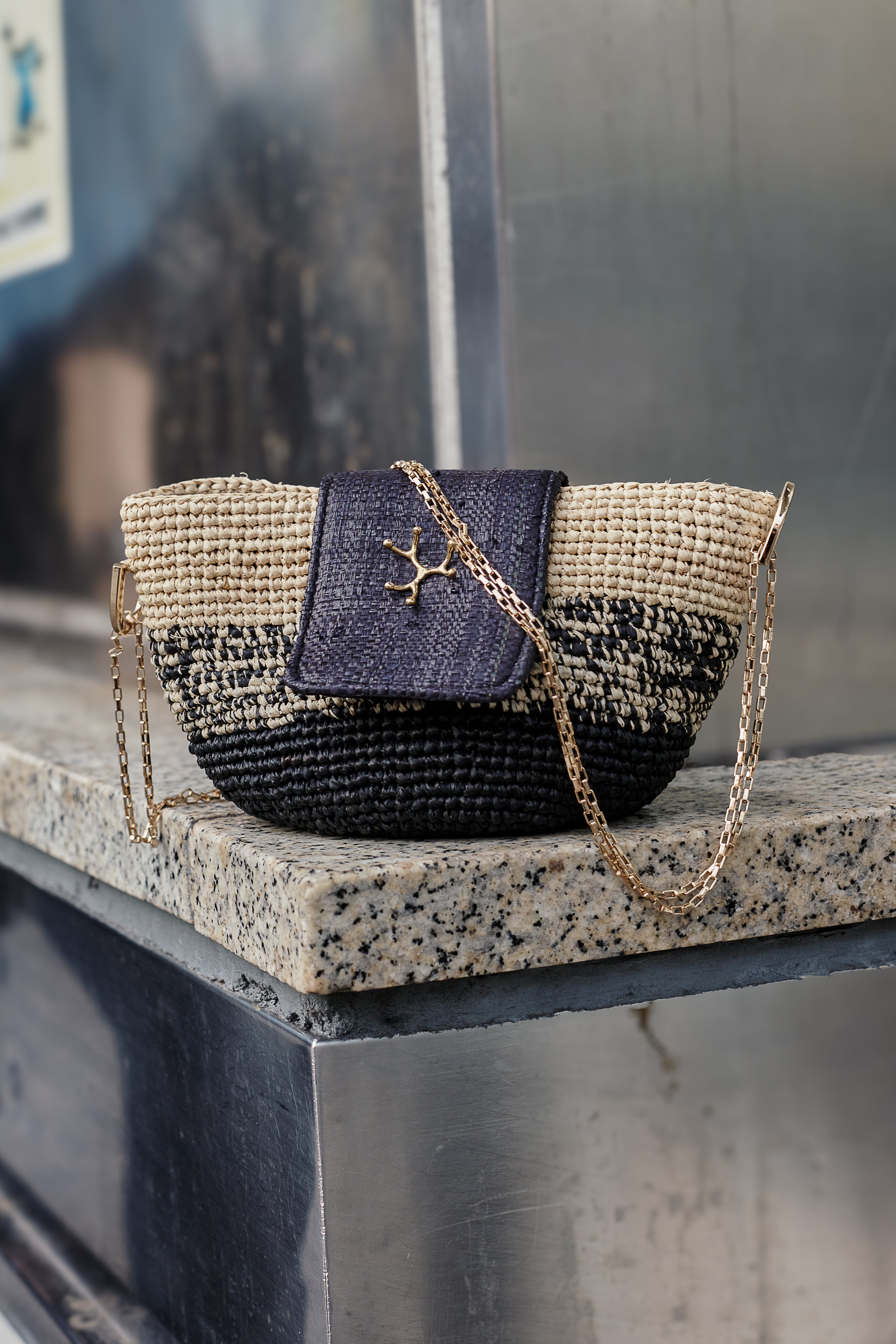 Raffia is a natural fiber, extracted from the palms of the raffia tree, in Madagascar by certified collectors. It is a strong and flexible fiber, perfect for accessories, decors, and handbags.