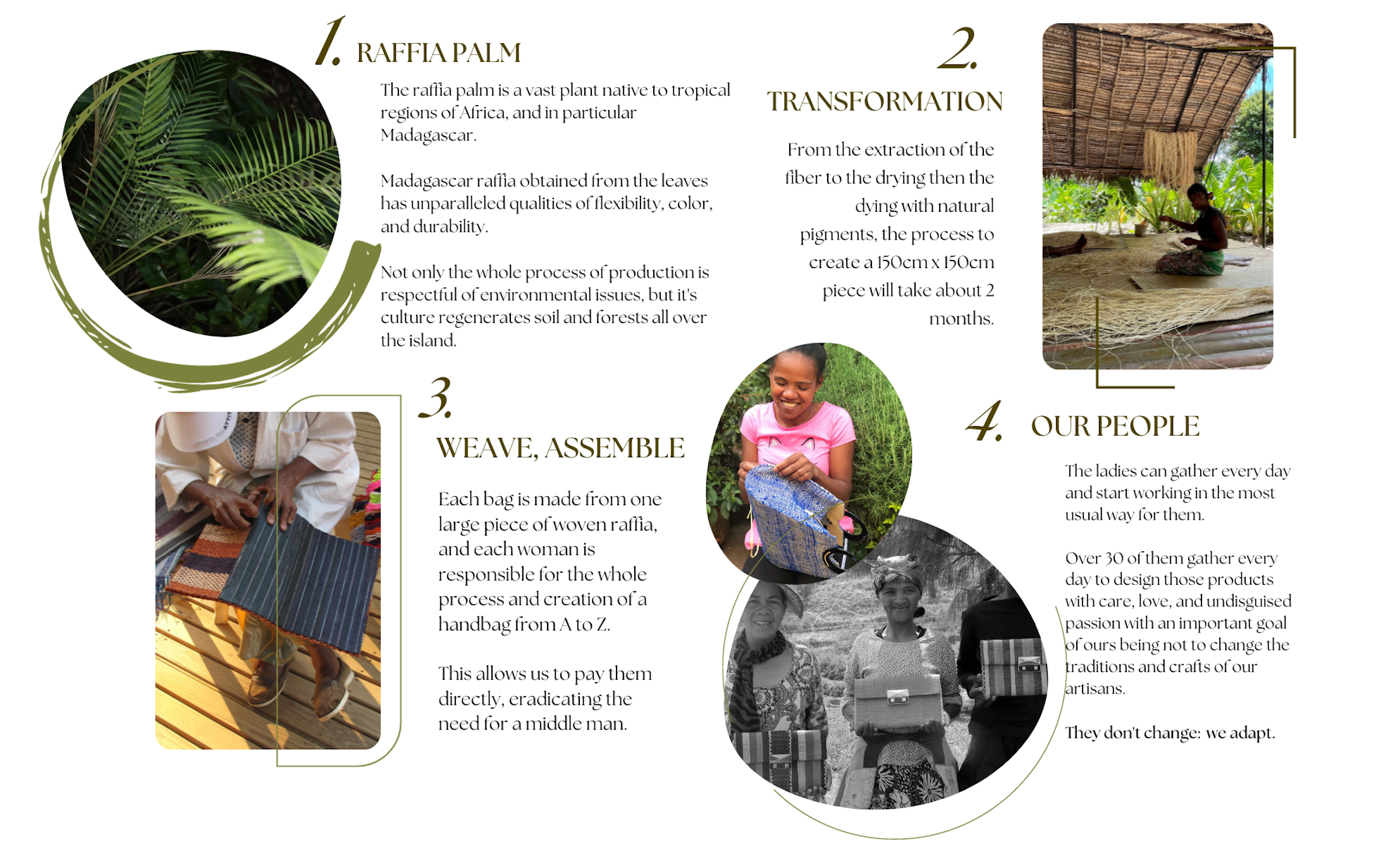 In 2015, our founder, Clémence Goudard, was travelling across eastern Africa when she came to work for a charity in Madagascar. After 5 years of studying Fashion Design & Management in Paris and New York, it was here she conceived the idea for Good People. She was inspired by the talent and traditions of the local artisans, their ability to turn natural fibres into everyday objects. So, she was motivated to build this brand and train them in quality and how to harness their skills. The business began with just six of these gifted women, and has since grown to over 30 passionate women who design and craft our bags.